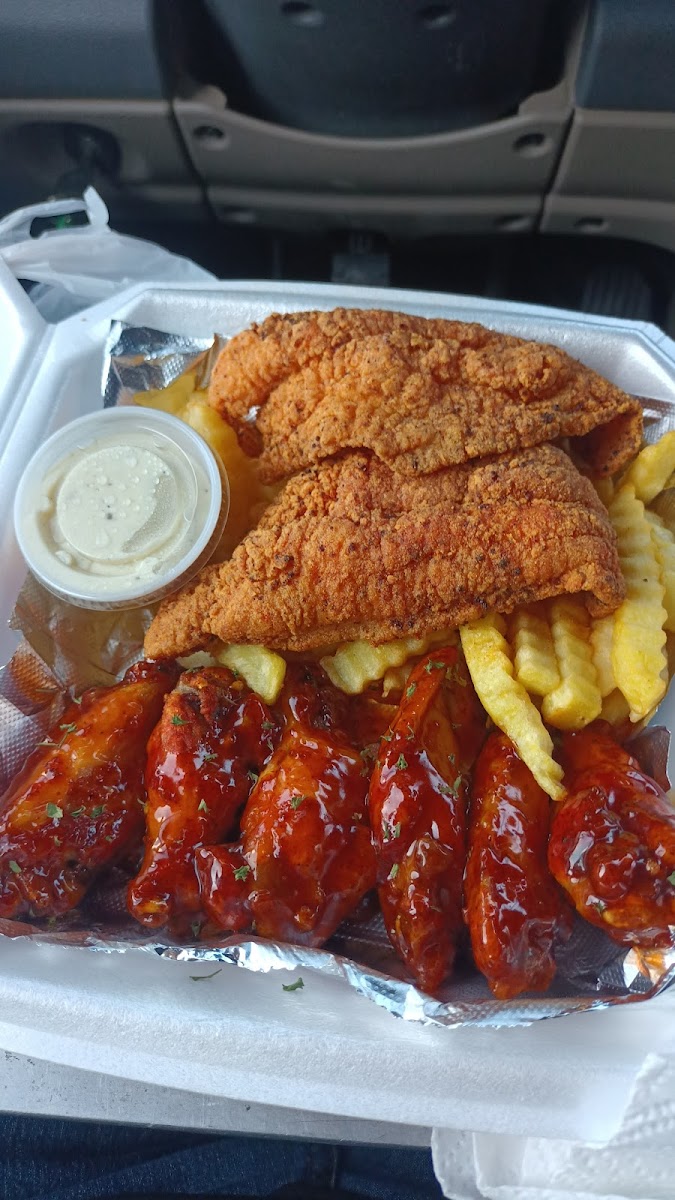 The catfish was cooked nice and crispy, and the wings were the star of the show. I absolutely loved them; they were lemon pepper hot, and the fries were so nice and hot. Everything was cooked made-to-order, and I enjoyed all of it! I will be going back and even trying out their new location!