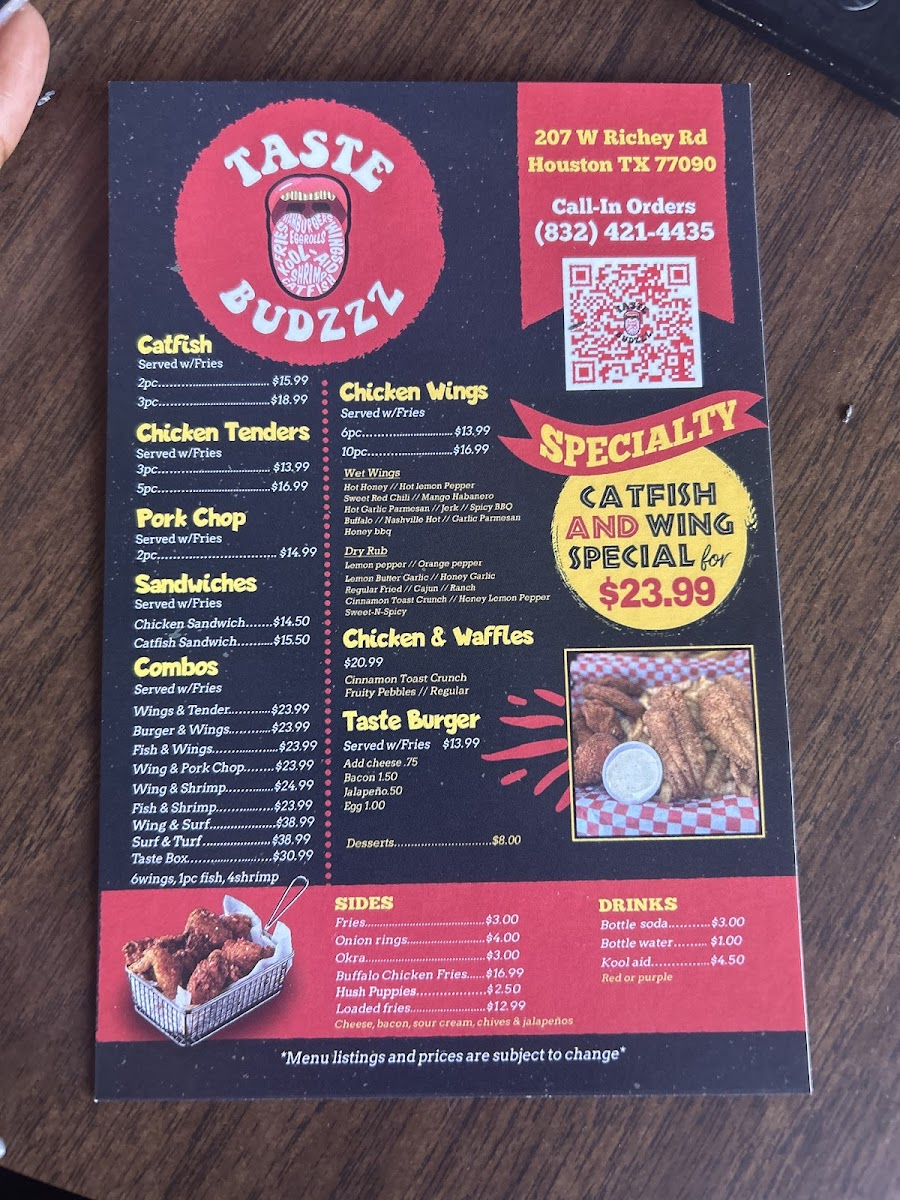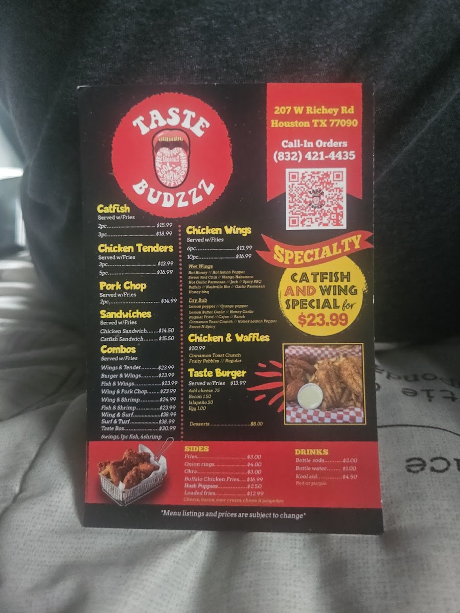 The menu at Taste Budzzz offers a straightforward and inviting selection of American comfort food, crafted for casual meals and laid-back gatherings. You’ll find hearty options like their signature Fish N Wing with Fries or a classic Catfish Sandwich, alongside satisfying sides such as loaded fries packed with cheese and jalapeños or crispy hush puppies. These are the kind of dishes that work well for lunch breaks, relaxed dinners, or spur-of-the-moment cravings.